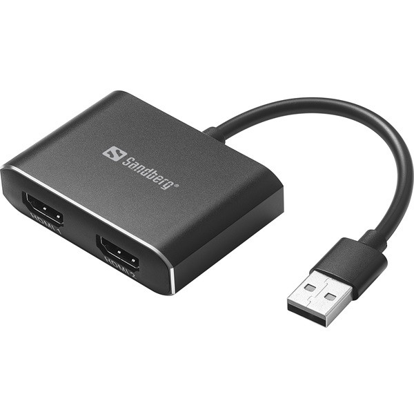 A Sandberg USB – 2xHDMI kapcsolat egyszerűen és gyorsan két extra HDMI-porttal bővíti számítógépét. Így lehetőség nyílik további monitorok, projektorok vagy TV csatlakoztatására a számítógép USB-portjához. Hasznos megoldás asztali vagy koferenciatermi használatra.