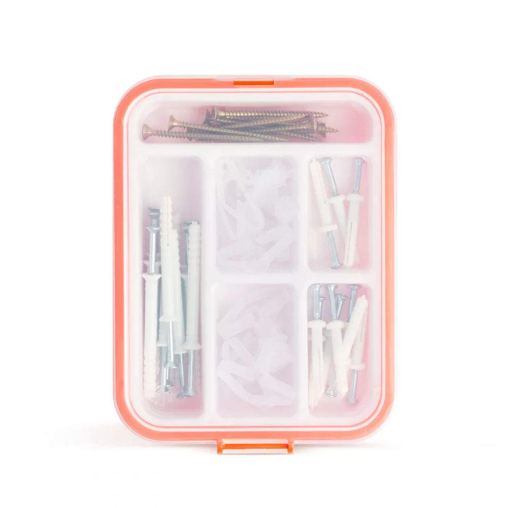 Ön is a barkácsolás szerelmese? Vagy csak a háztartás körüli teendőkre korlátozódik szenvedélye? Ebben a csavar/tipli szettben nem fog csalódni. Használhatja bármilyen falazat esetén rögzítési célra, akár képek, polcok, konzolok felszerelésére is alkalmas. A praktikus átlátszó doboztető nagyfokú áttekinthetőséget biztosít.